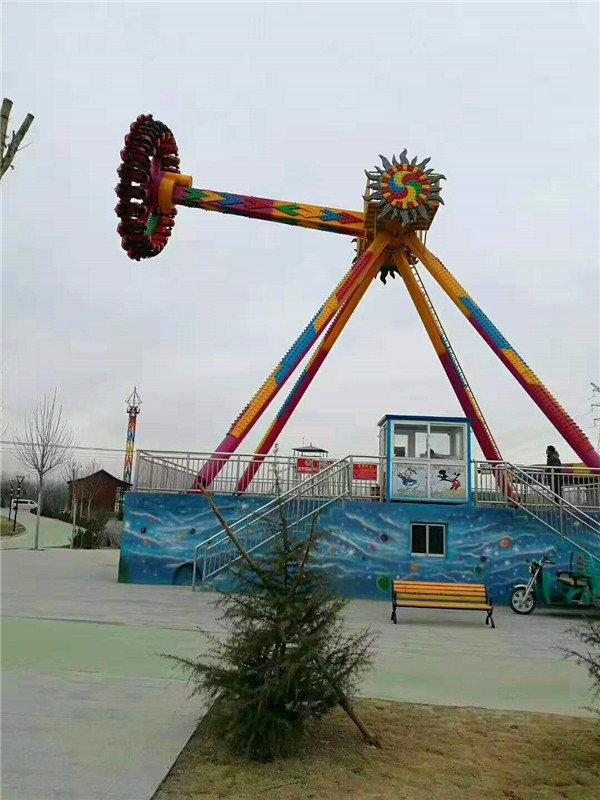 游客乘坐在萍鄉23座上驅動擺錘上往復擺蕩,令人目眩神迷;游客往往情不自禁的發出驚呼與歡笑,較大的提高了整個游樂場的歡樂氣氛,使許多游客流連忘返,不愿離開