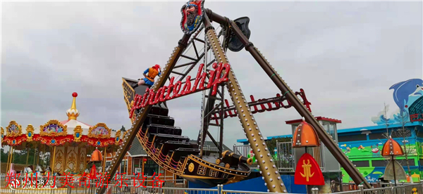 鄭州力美奇游樂設備有限公司--江西宜春高安市巴羅洛旅游度假區豪華轉馬、24座仿古海盜船安裝現場。