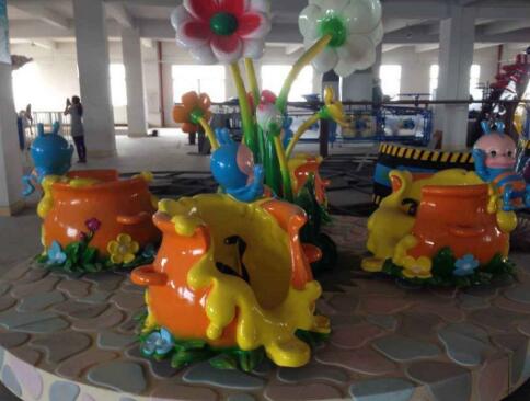 旋轉(zhuǎn)小蜜罐是旋轉(zhuǎn)咖啡杯游藝機(jī)的一種,造型精美可愛(ài),深受小朋友的喜愛(ài)。“咖啡杯”是一款旋轉(zhuǎn)類(lèi)游樂(lè)設(shè)備。乘客可以自由隨著設(shè)備的節(jié)奏轉(zhuǎn)動(dòng),也可以自己把握轉(zhuǎn)動(dòng)方向.乘客乘坐過(guò)程中轉(zhuǎn)動(dòng)出一種溫暖的感覺(jué),轉(zhuǎn)動(dòng)中體驗(yàn)快樂(lè)。