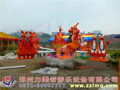 兒童游樂設施袋鼠跳是種新型彈跳類游樂設備,產品座艙造型有六組袋鼠組成,造型可愛生動,樂趣十足,適合不同年齡階段的人乘坐,該游樂設備運行時,伴隨奇妙的音樂,座艙會隨著設備的旋轉而上下跳動,猶如坐在袋鼠的肚囊一般,給你帶來不一樣的乘坐體驗和樂趣。